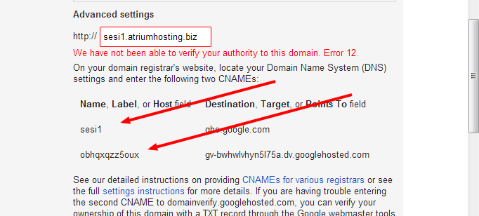 Masukan 2 Cname yg di rekomendasikan blogspot tersebut cname di error tersebut yaitu: