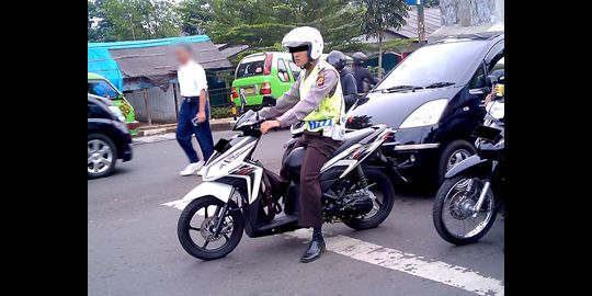 Polisi ini belok seenaknya tanpa menyalakan lampu sein. Mungkin karena kebiasaan di kampung.