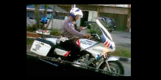 Padahal mengangkat Hp dan Sms, ketika berkendara merupakan pelanggaran lalu lintas, tapi tidak untuk pak polisi ini. Karena dia yang pegang surat tilang.